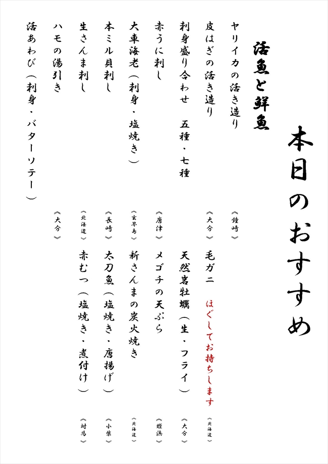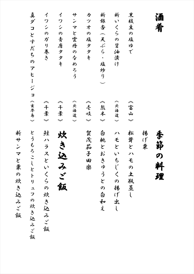 西中洲・銀座からの季節の旬の味わい、海の幸、山の幸 本物の食材で心を込めた職人の究極の技でおもてなしいたします